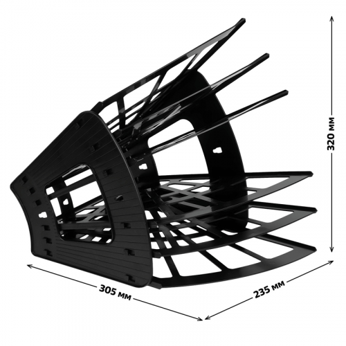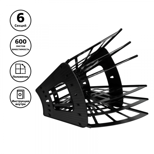 Лоток СТАММ серии "Эконом" 6-ти секционный 5 отделений для бумаг формата А4 предназначен для хранения и систематизации бумажной продукции. Конструкция предусматривает возможность горизонтального и вертикального расположения. Регулируемая ширина отделений. Прочный, легкий, вместительный корпус. Изготовлен из качественного пластика. Упакован в термоусадочную пленку, поставляется в разобранном виде. Цвет лотка - черный. Изделие высотой 305мм, шириной 320мм, глубиной 235мм вмещает до 600 листов.