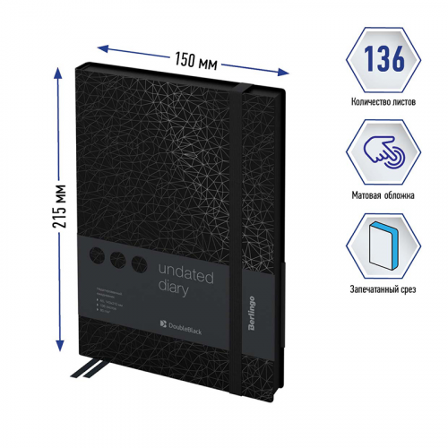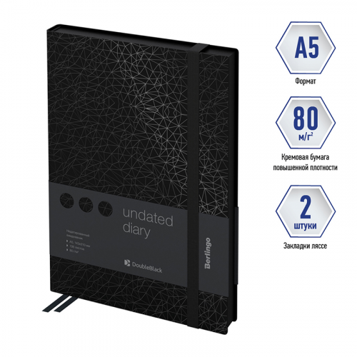 Ежедневник недатированный, А5, 136л., кожзам, Berlingo "DoubleBlack", черный срез, черный, с рисунком