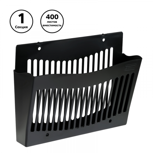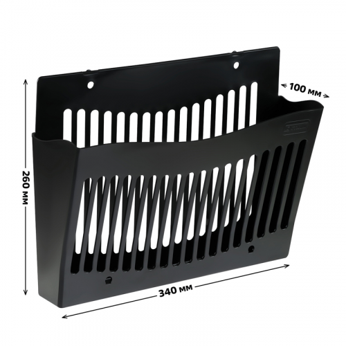 Лоток для бумаг настенный "СТАММ" предназначен для хранения бумажной продукции формата А4. Прочный, лёгкий корпус, сетчатая поверхность. Изделие глубиной 100 мм, высотой 260мм и шириной 340мм вмещает до 400 листов. Модель имеет два отверстия для крепления к стене. Крепёж в комплект не входит. Позволяет эффективно использовать рабочее пространство. Изготовлен из качественного ударопрочного пластика. Цвет лотка - черный. Изделие высотой 260мм, глубиной 100мм, шириной 345мм вмещает до 400 листов.