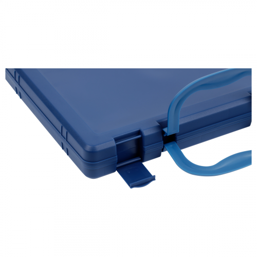 Портфель-кейс "СТАММ" предназначен для переноса и хранения документации формата А4. Прочный корпус оснащён двумя надёжными защёлками и удобными ручками. Высота 275мм, глубина 50мм, ширина 365мм. Цвет - синий. Упакован в пакет с цветным вкладышем.