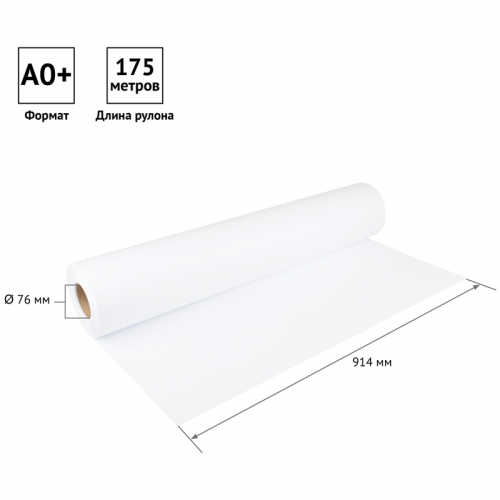 Размер бумажного полотна составляет 914 мм, что соответствует формату А0+. Длина рулона - 175 м. Внутренний диаметр втулки - 76 мм.