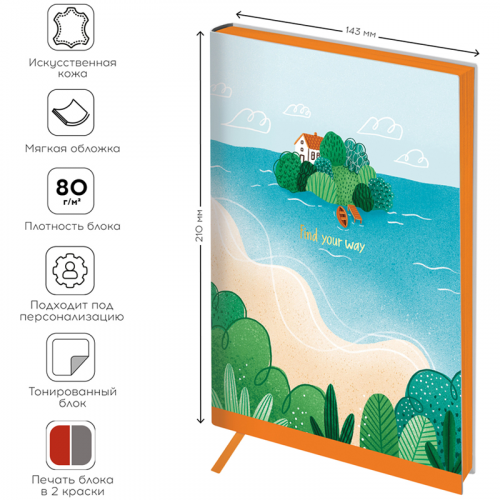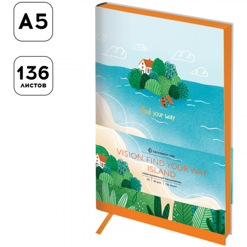 Ежедневник Greenwich Line Vision. Find your way. Island − отличный помощник и незаменимый атрибут деловой жизни. Внутренний блок ежедневника формата A5 вмещает 136 листов, которые созданы из высококачественной кремовой бумаги повышенной плотности 80 г/м², а благодаря ультрамягкой двухслойной обложке из высококачественной экокожи изделие не захочется выпускать из рук. Ежедневник содержит справочный материал, имеет стильную закладку-ляссе и отлично подходит под персонализацию. Индивидуальная упаковка изделия гарантирует его целостность и сохранность. • Формат: А5; • Размер: 143*210 мм; • Материал обложки: искусственная кожа; • Цвет обложки: рисунок.