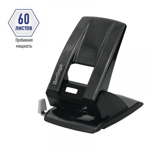Дырокол Berlingo "Power TX" 60л., металлический, с фиксатором и линейкой, черный