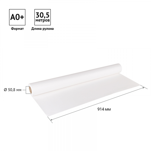 Размер бумажного полотна составляет 914 мм (36 in), что соответствует формату А0+. Длина рулона - 30,5 м (100 ft). Внутренний диаметр втулки - 50,8 мм.