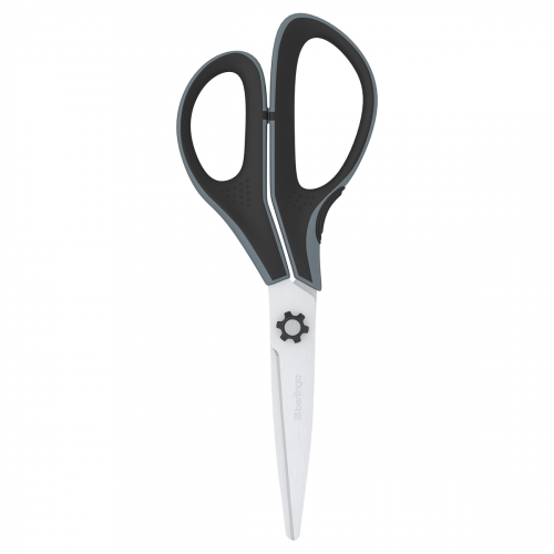 Ножницы Berlingo "Easycut 350" подходят для работы с бумагой и картоном. Размер ножниц 21 см. Лезвия изготовлены из нержавеющей стали. Особая заточка лезвий делает их в три раза острее аналогов. Удобные пластиковые ручки эргономичной формы выполнены с технологией двойного литья, что делает их более прочными и надежными. Дизайн ручек дополнен выемкой под палец и точечным дизайном для более комфортного использования. Новый усовершенствованный соединительный винт. Индивидуальная упаковка - блистер с европодвесом. Цвет - серый.