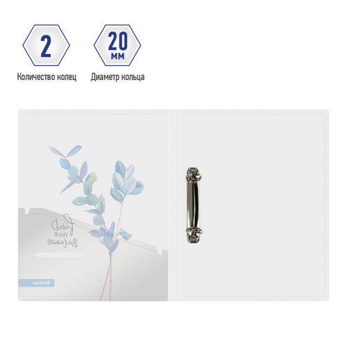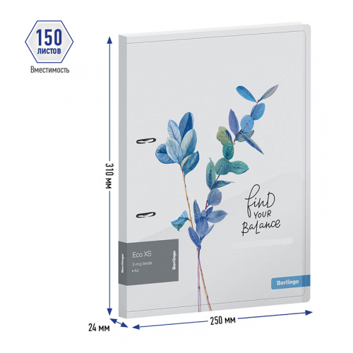 Папка пластиковая на 2 D-кольцах Berlingo "Eco XS" формата А4 с прозрачной обложкой с рисунком. Специальная D форма колец помогает удобно и ровно хранить документы, которые могут быть выровнены по левому краю, благодаря боковой вертикальной стенке кольца. Диаметр колец 20мм. Специальные формовые отверстия в обложке служат для надежного защелкивания папки в сложенном виде, предотвращают случайное открытие обложки и замятие документов внутри при хранении и транспортировке. Изготовлена из высококачественного полипропилена с матовой текстурой поверхности "песок", на которой не видно отпечатков пальцев и мелких царапин. Предназначена для хранения документов. Толщина обложки 600мкм. На внутренней стороне обложки оснащена плотным прозрачным карманом для удобного хранения мелочей: ручки, заметок, визиток, дисков, флешек и др. Папка вмещает до 150 листов. Упакована в индивидуальный прозрачный пакет по форме.
