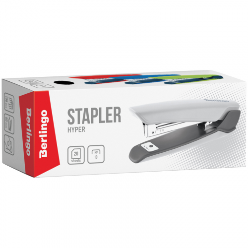 Стильный канцелярский степлер Berlingo Hyper прекрасно подходит для ежедневного использования на рабочем месте. Степлер вмещает 100 скоб размером №10, имеет 1 тип скрепления. Сшивает до 20 листов. Глубина захвата – 60 мм.