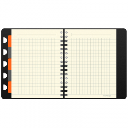 Бизнес-тетрадь содержит съемную брендированную линейку, которую можно использовать как закладку или разделитель и с легкостью можно перемещать в удобное место. Тетрадь оснащена 5 разделителями-уголками с цветным индексным блоком, это позволяет легко структурировать документы внутри тетради и дает возможность быстрого доступа. Внутренний блок – высококачественная тонированная бумага, плотностью 80г/м2, 80 листов в клетку, рамка для заголовка, темы или даты, поля с обеих сторон блока на каждом листе, линовка на вылет. Внутренний блок имеет микроперфорацию для ровного отрыва листа и дальнейшего хранения или подшивки в аккуратном виде. Размер бизнес-тетради 220*192 мм, диаметр гребня 21 мм. Упаковка в термоусадочную пленку позволяет предохранить листы от замятия и загрязнения в процессе транспортировки.