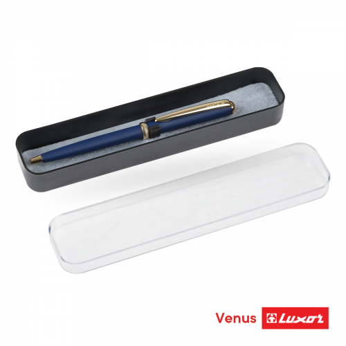 Ручка шариковая Luxor "Venus" синяя, 0.7мм, корпус синий/золото, кнопочный механизм, футляр