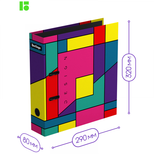 Папка-регистратор Berlingo серии Color Block формата А4 идеальна для создания архива. Папка размером 320*290*80 мм изготовлена из жёсткого износостойкого картона с односторонним покрытием из качественной матовой ламинированной бумаги. Папка эффективно экономит офисное пространство. Ширина корешка составляет 80 мм. Конструкция разработана с учётом всех особенностей эксплуатации. Выгодно отличается надёжным арочным механизмом из качественного металла. Яркий дизайн сочетает в себе контрастные цвета и геометрический формы в рамках коллекции Color Block. Эргономичное отверстие в корешке помогает быстро снять папку с полки. Папка вертикальной ориентации вмещает до 600 листов. • Вместимость: 600; • Формат: А4; • Цвет: разноцветный; • Ширина корешка: 80 мм.