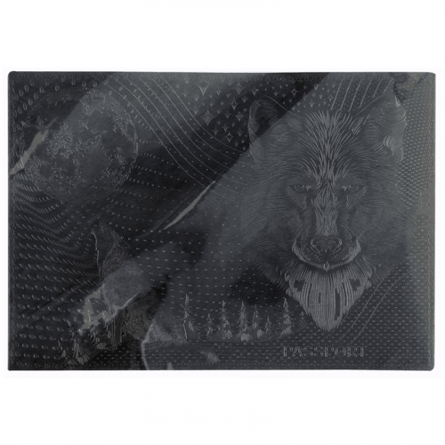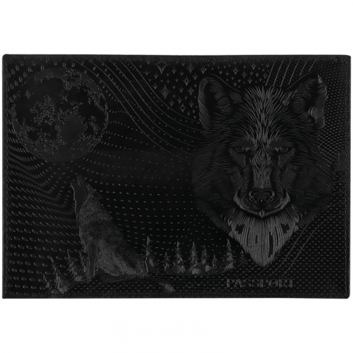 Обложка для паспорта OfficeSpace "Волк", кожа, тиснение, черная