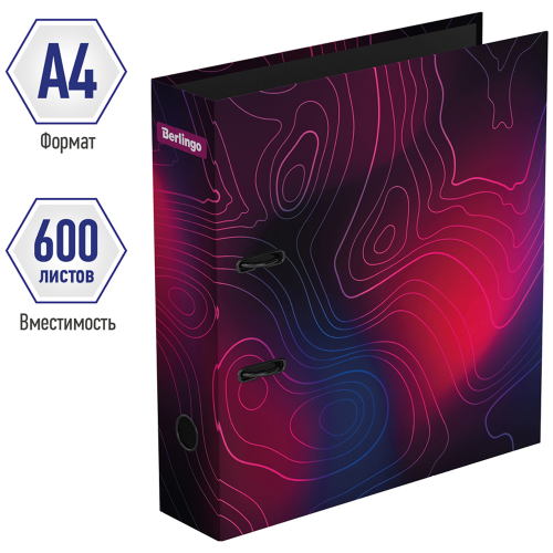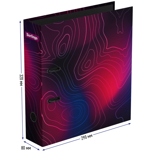 Папка-регистратор Berlingo серии Terrain формата А4 идеальна для создания архива. Папка размером 320*290*80 мм изготовлена из жёсткого износостойкого картона с односторонним покрытием из качественной матовой ламинированной бумаги. Папка эффективно экономит офисное пространство. Ширина корешка составляет 80 мм. Конструкция разработана с учётом всех особенностей эксплуатации. Выгодно отличается надёжным арочным механизмом из качественного металла. Дизайн регистраторов Terrain представляет собой сочетание насыщенных цветов и плавных линий, характерных для картографии. Эргономичное отверстие в корешке помогает быстро снять папку с полки. Папка вертикальной ориентации вмещает до 600 листов. • Вместимость: 600; • Формат: А4; • Цвет: разноцветный; • Ширина корешка: 80 мм.