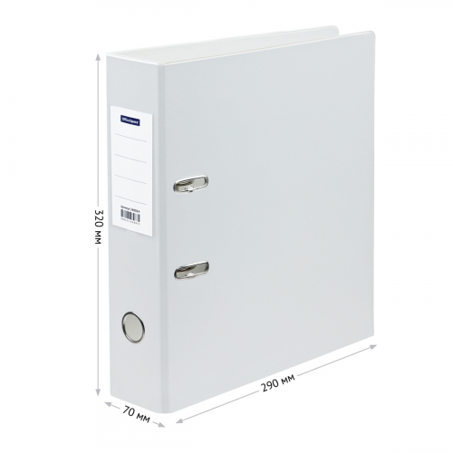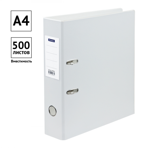 Папка-регистратор OfficeSpace формата А4 с арочным механизмом – отличный помощник для хранения и систематизации документов. Ширина корешка – 70 мм. Папка белого цвета вмещает до 500 листов. Размер – 320*290*70 мм. Папка-регистратор изготовлена из жесткого износостойкого картона с двусторонним ПВХ-покрытием. Папка имеет арочный механизм из качественного металла. Конструкция разработана с учетом всех особенностей эксплуатации. Удобное отверстие в корешке помогает быстро снять папку с полки. На корешке папки есть карман со сменным информационным ярлыком для маркировки. • Вместимость, в листах: 500; • Формат: А4; • Цвет: белый; • Ширина корешка: 70 мм