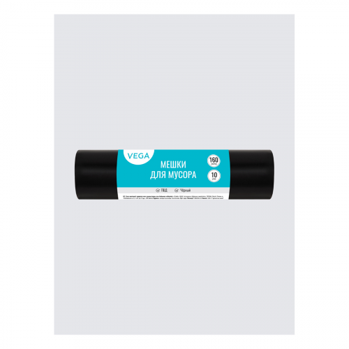 Мешки для мусора 160л Vega ПВД, 80*106см, 20мкм, 10шт., черные, в рулоне