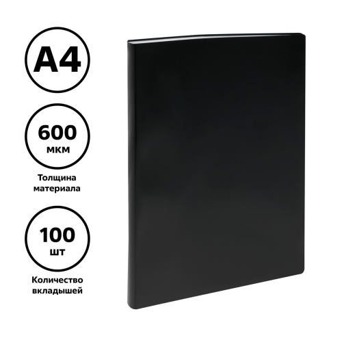 Папка со 100 вкладышами СТАММ А4, 30мм, 600мкм, пластик, черная