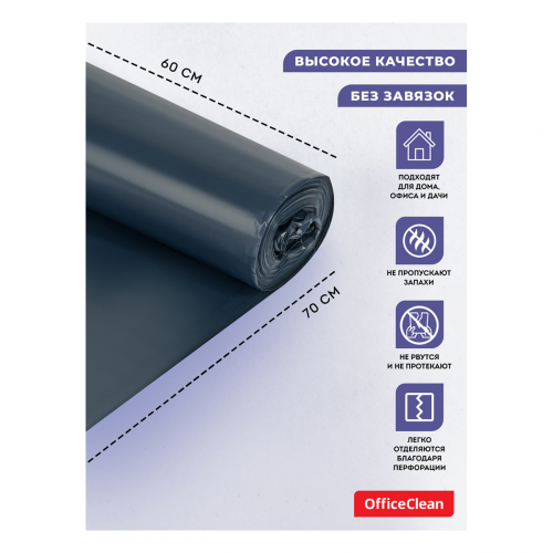 Мешки для мусора двухслойные особо прочные OfficeClean производятся из полиэтилена высокого давления (ПВД). Мешки объемом 60 литров размера 60*70 см плотностью 30 мкм используются для хозяйственных, промышленных нужд. В рулоне 20 штук. Цвет – синий. ПВД – химически нейтральный материал, не шуршит, имеет красивую блестящую поверхность и не подвержен воздействию жиров и кислот. Имеет большую разрывную нагрузку, полотно плотнее, чем у полиэтилена низкого давления. • Объем мешков: 60 л.; • Плотность: 30 мкм; • Размер: 60*70 см; • Количество: 20 штук.