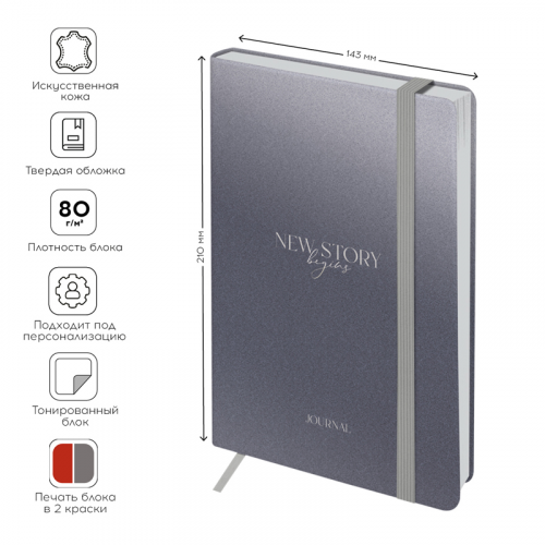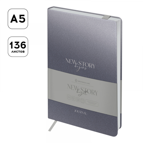 Ежедневник Greenwich Line серии New Story станет отличным помощником. Благодаря твёрдой обложке из высококачественной экокожи его не захочется выпускать из рук. Ежедневник размером 145*217 мм содержит 136 листов высококачественной кремовой бумаги повышенной плотности 80 г/м2 с пантонной печатью в 2 краски. Изделие содержит справочный материал, имеет стильную закладку-ляссе и резинку-фиксатор, благодаря которой он не откроется в рюкзаке или сумке. Дополнительно есть удобный карман для визиток или документов. Стильная обложка серебряного цвета с металлическим блеском. Недатированный ежедневник Greenwich Line отлично подходит под персонализацию. Имеет в индивидуальную упаковку, что гарантирует его целостность и сохранность.
