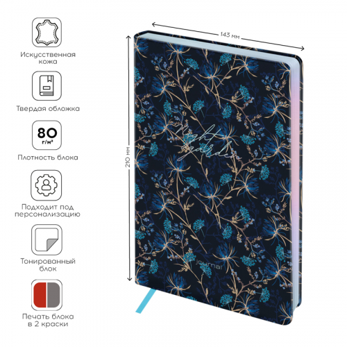 Ежедневник недатированный, А5, 136л., кожзам, Greenwich Line "Night garden. Blue", тон. блок