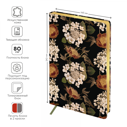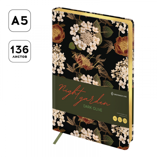 Ежедневник недатированный, А5, 136л., кожзам, Greenwich Line "Night garden. Dark olive", тон. блок