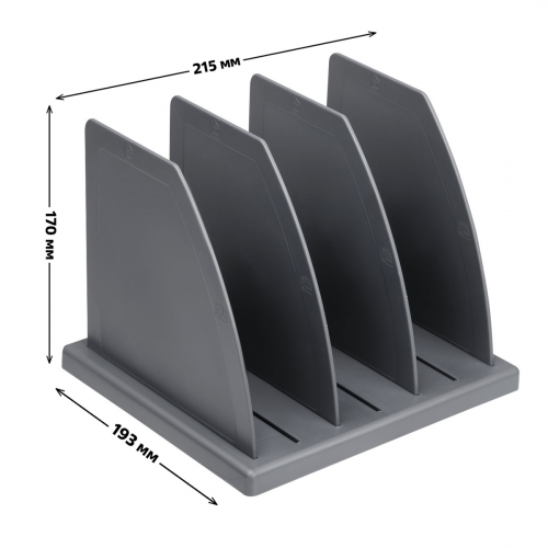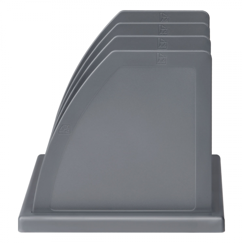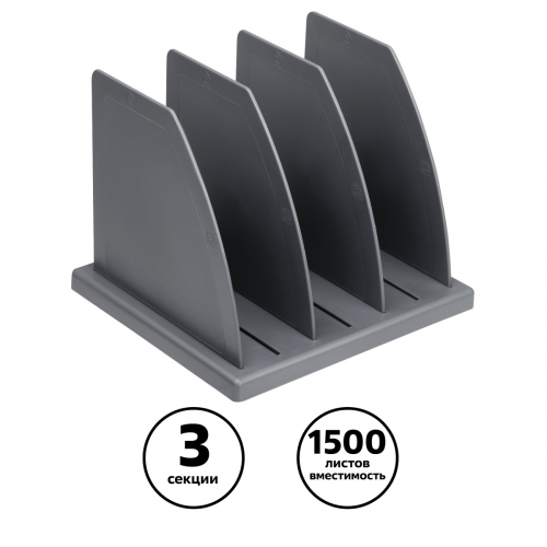 Лоток-сортер 3 отделения для бумаг форматов А4, А5. Современный дизайн, быстрая и легкая сборка. Возможна установка перегородок в вертикальном и горизонтальном положениях. Удобная конструкция предусматривает регулировку ширины отделений. Изготовлен из качественного пластика. Упакован в термоусадочную пленку, поставляется в разобранном виде. Инструкция по сборке в комплекте. Цвет лотка - серый. Изделие высотой 170мм, глубиной 193мм, шириной 215мм вмещает 1500 листов.