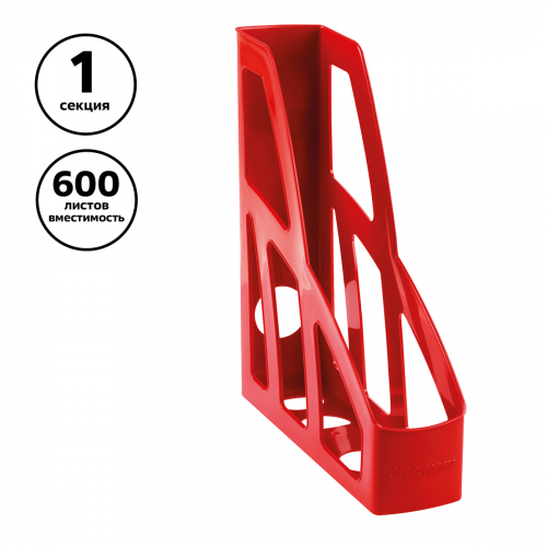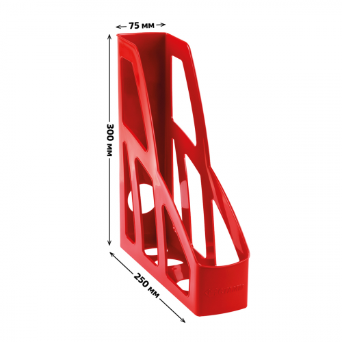 Лоток для бумаг вертикальный "СТАММ" серии "Лидер" предназначен для хранения и систематизации бумажной продукции формата А4. Оригинальный дизайн, лёгкий, устойчивый и прочный корпус. Имеет отверстие на торцевой части для удобной переноски. Изготовлен из качественного пластика. Цвет лотка - красный. Изделие высотой 297мм, глубиной 250мм, шириной 75мм вмещает до 550 листов.