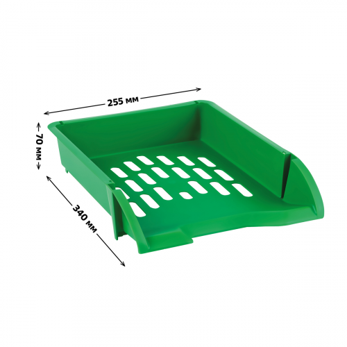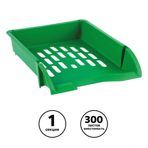 Лоток для бумаг горизонтальный "СТАММ" серии "Лидер" подходит для хранения и систематизации бумажной продукции формата А4. Прочный, вместительный корпус. Лоток имеет современный дизайн и сетчатую поверхность. Предусмотрена возможность установки одного лотка на другой. Изготовлен из качественного пластика. Изделие высотой 70 мм, глубиной 340мм и шириной 255мм вмещает до 300 листов. Цвет лотка - зеленый.
