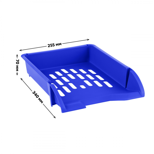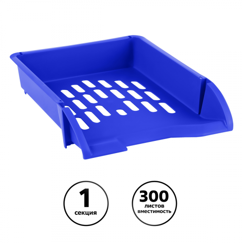 Лоток для бумаг горизонтальный "СТАММ" серии "Лидер" подходит для хранения и систематизации бумажной продукции формата А4. Прочный, вместительный корпус. Лоток имеет современный дизайн и сетчатую поверхность. Предусмотрена возможность установки одного лотка на другой. Изготовлен из качественного пластика. Изделие высотой 70 мм, глубиной 340мм и шириной 255мм вмещает до 300 листов. Цвет лотка - синий.