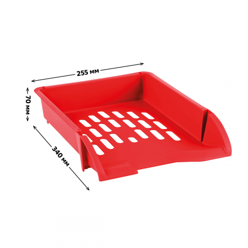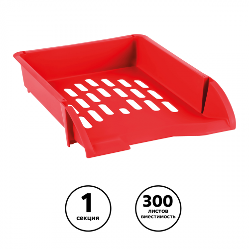 Лоток для бумаг горизонтальный "СТАММ" серии "Лидер" подходит для хранения и систематизации бумажной продукции формата А4. Прочный, вместительный корпус. Лоток имеет современный дизайн и сетчатую поверхность. Предусмотрена возможность установки одного лотка на другой. Изготовлен из качественного пластика. Изделие высотой 70 мм, глубиной 340мм и шириной 255мм вмещает до 300 листов. Цвет лотка - красный.