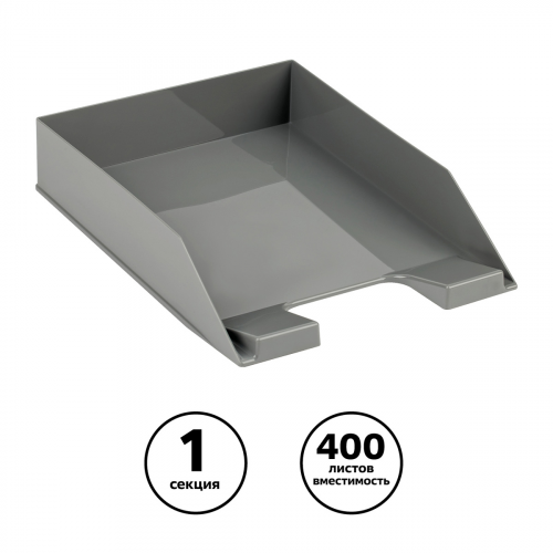 Лоток для бумаг горизонтальный "СТАММ" серии "Фаворит" предназначен для хранения и систематизации бумажной продукции формата А4. Лаконичный дизайн с глянцевой поверхностью. Лоток имеет лёгкий, вместительный, прочный корпус. Предусмотрена возможность установки одного лотка на другой. Изделие высотой 67м, глубиной 340мм и шириной 255мм вмещает до 400 листов. Изготовлено из качественного пластика. Упаковано в пакет. Цвет - серый.