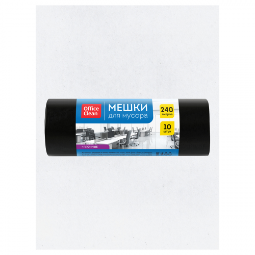 Мешки для мусора 240л OfficeClean ПВД, 93*130см, 45мкм, 10шт., прочные, черные, в рулоне