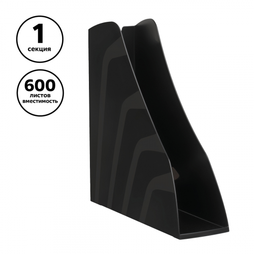Лоток вертикальный для бумаг "СТАММ" серии "Вектор" предназначен для хранения и систематизации бумажной продукции формата А4. Оригинальный дизайн, устойчивый, прочный корпус. Имеет комбинированную поверхность - глянцевую и матовую. Изготовлен из качественного пластика. Цвет лотка - черный. Изделие высотой 275мм, глубиной 265мм , шириной 80мм вмещает до 600 листов.