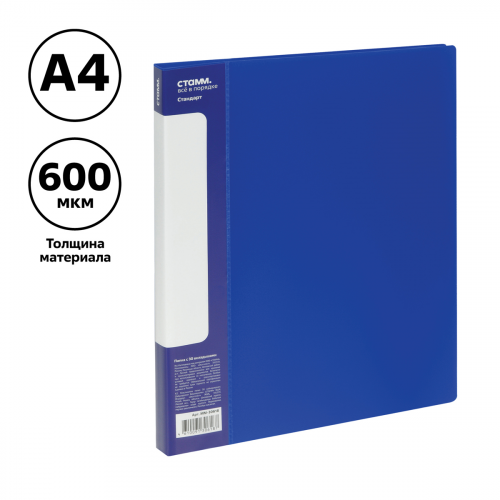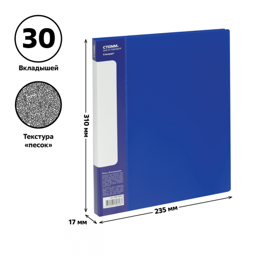 Папка с 30 вкладышами СТАММ "Стандарт" А4, 17мм, 600мкм, пластик, синяя