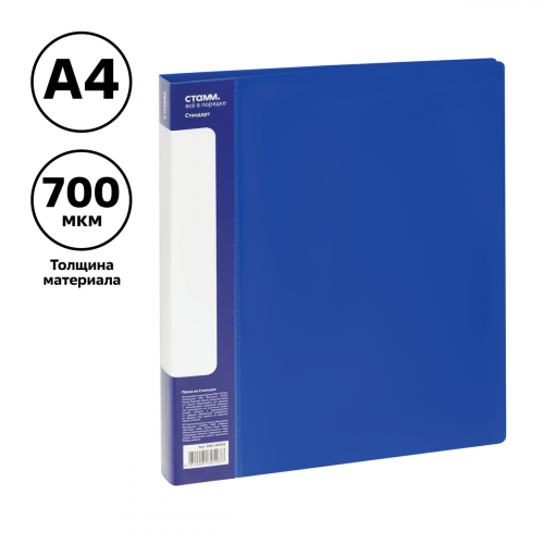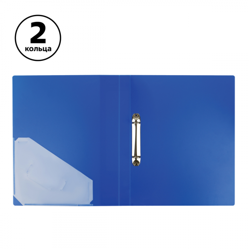 Папка на 2 кольцах «СТАММ» серии «Стандарт» предназначена для хранения перфорированных документов формата А4. Цвет папки – синий. Изготовлена из качественного полипропилена толщиной 700 мкм с текстурой «песок». Размер изделия составляет 310*250 мм. Ширина корешка 25 мм позволяет вмещать в папку до 120 листов. Кольцевой механизм, состоящий из 2 колец диаметром 16 мм, надежно держит документы. На корешке и внутренней стороне папки имеется карман. Папка упакована в индивидуальный пакет.