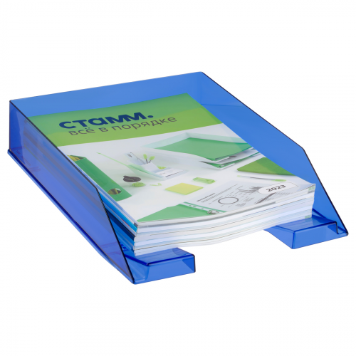 Лоток для бумаг горизонтальный "СТАММ" серии "Фаворит" предназначен для хранения и систематизации бумажной продукции формата А4. Лаконичный дизайн с глянцевой поверхностью. Лоток имеет лёгкий, вместительный, прочный корпус. Предусмотрена возможность установки одного лотка на другой. Изделие высотой 67м, глубиной 340мм и шириной 255мм вмещает до 400 листов. Изготовлено из качественного пластика. Упаковано в пакет. Цвет - тонированный синий.