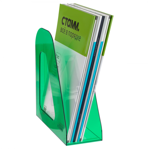 Лоток вертикальный для бумаг "СТАММ" серии "Фаворит" предназначен для хранения и систематизации бумажной продукции формата А4. Классический дизайн. Легкий, прочный, устойчивый корпус. Изготовлен из качественного пластика. Цвет лотка - тонированный зеленый. Изделие высотой 240мм, глубиной 235мм , шириной 90мм вмещает до 750 листов.