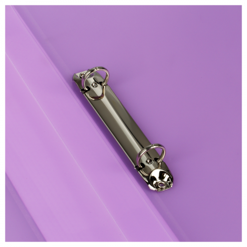 Папка на двух кольцах «СТАММ» серии «Кристалл» предназначена для сшивания и хранения документов формата А4. Изделие выполнено в полупрозрачном фиолетовом цвете. Внешняя сторона папки дополнена фактурным паттерном «Кристалл», который защищает изделие от загрязнений и повреждений. Папка изготовлена из качественного полипропилена толщиной 700 мкм. Размер папки — 310*250 мм. Кольцевой механизм, состоящий из двух колец диаметром 16 мм, надёжно держит документы. Ширина корешка — 25 мм, что позволяет вмещать до 120 листов. Папка подходит для хранения как перфорированных документов, так и папок-вкладышей с универсальной перфорацией. На корешке находится карман. Папка упакована в индивидуальный пакет.