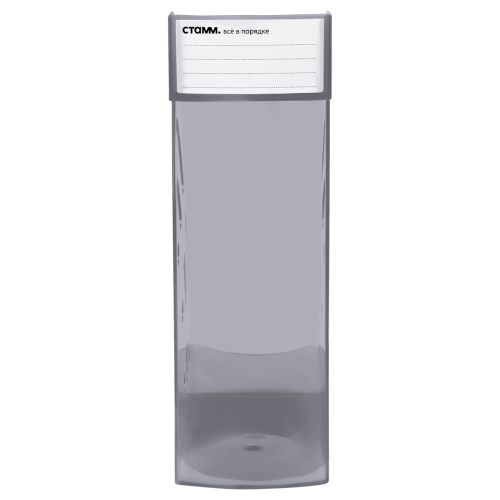 Вертикальный лоток для бумаг "СТАММ" серии "Эксперт" предназначен для хранения документов формата А4. Для удобного вытягивания с полки на торце предусмотрен захват, который также служит окном для маркировки с возможностью смены вкладышей. Изделие изготовлено из качественного пластика. Материал известен своей долговечностью, устойчивостью к ударам, поэтому лоток отличается надёжностью. Подходит для хранения тяжёлых каталогов и папок. Цвет лотка - тонированный серый. Лоток вмещает до 800 листов. Изделие высотой 286мм, глубина 285мм, шириной 95мм вмещает до 800 листов.