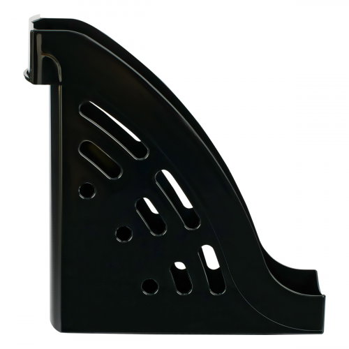 Вертикальный лоток для бумаг "СТАММ" серии "Эксперт" предназначен для хранения документов формата А4. Для удобного вытягивания с полки на торце предусмотрен захват, который также служит окном для маркировки с возможностью смены вкладышей. Изделие изготовлено из качественного пластика. Материал известен своей долговечностью, устойчивостью к ударам, поэтому лоток отличается надёжностью. Подходит для хранения тяжёлых каталогов и папок. Цвет лотка - черный. Лоток вмещает до 800 листов. Изделие высотой 286мм, глубина 285мм, шириной 95мм вмещает до 800 листов