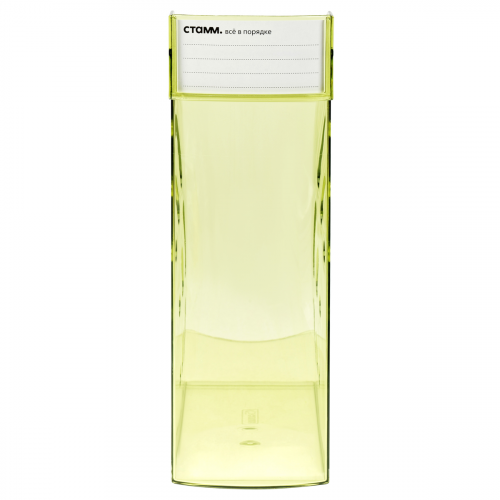 Вертикальный лоток для бумаг "СТАММ" серии "Эксперт" предназначен для хранения документов формата А4. Для удобного вытягивания с полки на торце предусмотрен захват, который также служит окном для маркировки с возможностью смены вкладышей. Изделие изготовлено из качественного пластика. Материал известен своей долговечностью, устойчивостью к ударам, поэтому лоток отличается надёжностью. Подходит для хранения тяжёлых каталогов и папок. Цвет лотка - тонированный лайм. Лоток вмещает до 800 листов. Изделие высотой 286мм, глубина 285мм, шириной 95мм вмещает до 800 листов.