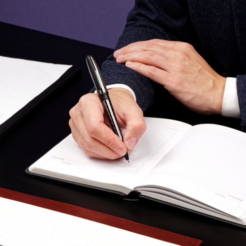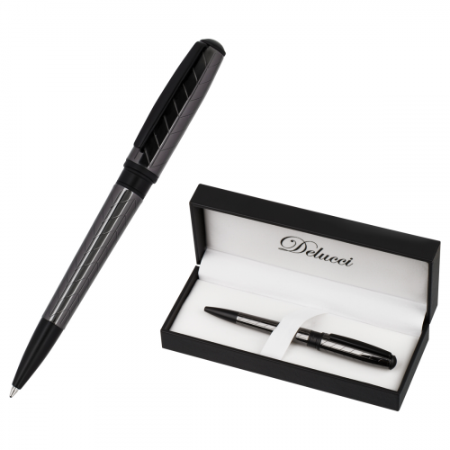 Ручка шариковая Delucci "Marte" синяя, 1.0мм, корпус титан/черный, поворотн., подарочная упаковка