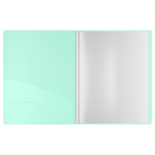 Папка изготовлена из высококачественного полипропилена с особой фактурой с эффектом soft-touch. Внутренняя сторона обложки оснащена плотным прозрачным карманом для удобного хранения мелочей: ручки, заметок, визиток, дисков, флешек и др. Папка выполнена в размере 310*230*9 мм. Папка имеет прозрачные фактурные листы-карманы увеличенной толщины 30 мкм, надёжно скреплённые сваркой. Вмещает до 100 бумажных листов. Индивидуальная упаковка в прозрачный пакет по форме. Папка оснащена съемным прозрачным стикером с выходной информацией и штрих-кодом. Поставляется в специальных шоу-боксах в качестве промежуточной упаковки.
