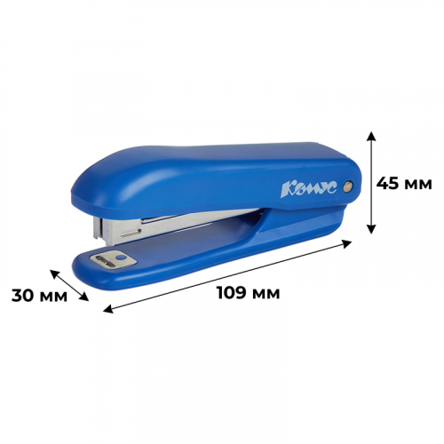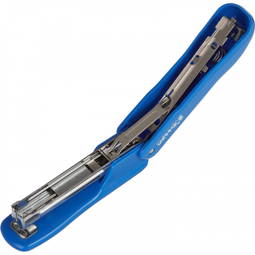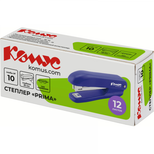 Степлер Комус Prima 8241 один из самых важных помощников для работы с документацией в офисе, образовательных учреждениях и дома. Настольный степлер выполнен в пластиковом корпусе синего цвета и обладает компактными размерами. Рабочие компоненты изготовлены из высококачественной стали. Степлер Комус Prima одновременно сшивает до 12 листов бумаги плотностью до 80 г/кв.м. Степлер скрепляет бумагу закрытым типом сшивания, при котором ножки скобы загибаются внутрь. Это дает возможность надежно хранить сшитые документы на протяжении длительного времени. Модель оснащена встроенным антистеплером. Степлер совместим со скобами № 10. Глубина закладки бумаги - 55 мм (5,5 см). Вместимость лотка для скоб: 100 скоб размером №10. Размер изделия: 109x45x30 мм.