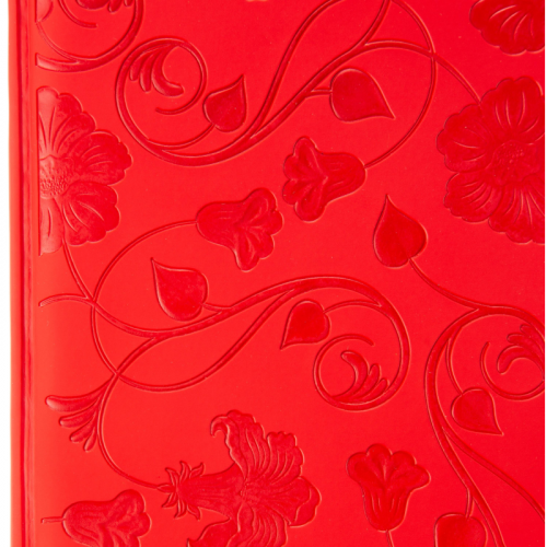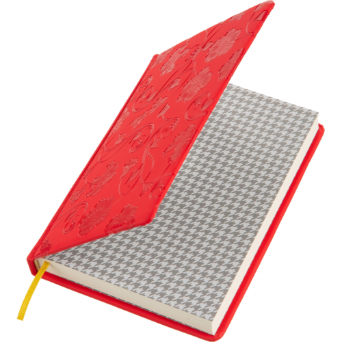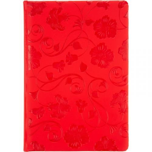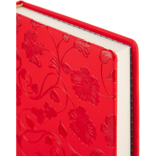 Еженедельник А5 недатированный, цвет алый 150x213 мм, ляссе золотого цвета, 160 листов, тонированный блок с печатью в 2 краски, имеется бумажный конверт на заднем форзаце ежедневника, календарь на 2024-2027 гг. Обложка выполнена из искусственной кожи с покрытием "Soft touch", на переднем развороте обложки нанесено тиснение "цветы колокольчики", с поролоном. Блок: офсет 80 г/м2 (линейка). Содержит информационно-справочный блок - праздники России, международные коды городов России, цифровые коды ГИБДД, справочник неметрических единиц и перевод в метрические, размеры одежды. Вставка - алфавитный блок без вырубки. Нет петли под ручку. Поставляется в термоусадочной пленке.