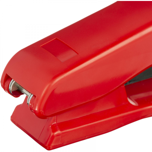 Степлер средний Комус Secundo 8224 один из самых важных помощников для работы с документацией в офисе, образовательных учреждениях и дома. Настольный степлер выполнен в пластиковом корпусе красного цвета и обладает средними размерами. Рабочие компоненты изготовлены из высококачественной стали. Степлер Комус Secundo одновременно сшивает до 20 листов бумаги плотностью до 80 г/кв.м. Позволяет производить сшивание открытым и закрытым способом. Степлер совместим со скобами № 24/6 и 26/6. Глубина закладки бумаги - 60 мм (6 см). Вместимость лотка для скоб: 80 скоб размером № 24/6, 100 скоб размером №26/6. Размер изделия: 132x58x38 мм. Для эффективного сшивания максимально допустимого объема бумаги необходимо расположить степлер на горизонтальной твердой поверхности, прикладывая усилия, плавно надавить на рычаг (при необходимости двумя руками), разномерно распределяя усилия по поверхности рычага.