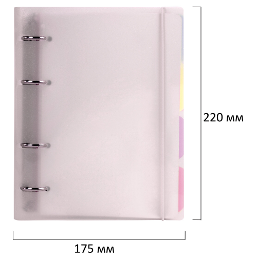 Тетрадь на кольцах А5 175х220 мм, 120 л., пластик, с резинкой и разделителями, BRAUBERG, Розовый, 404634
