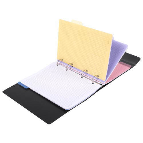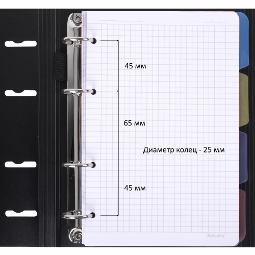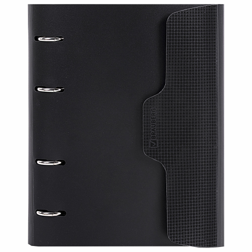 Тетрадь на кольцах А5 175х220 мм, 120 л., пластик, на липучке, с разделителями, BRAUBERG, Черный, 404637