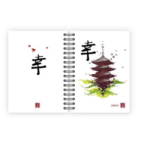 Тетрадь общая Mariner Япония А5 96 листов в клетку на спирали (140х198 мм, обложка в ассортименте)Коллекция 'Япония'. Тетрадь Mariner Япония А5 96 листов в клетку на спирали. Обложка - мелованный картон, офсетная печать 4 0, матовая ламинация, 4 дизайна в ассортименте. Внутренний блок - клетка в рамке, цвет печати серый, размер внутреннего блока 140x198 мм., бумага 65 г/кв.м, 100% белизны. Каждое изделие упаковано в термоусадочную пленку.В красном квадрате - Mariner c любовью. Большие иероглифы: рыбы - большая удача, бабочки - гармония, красные птички - богатство, пагода - счастье.Тетрадь для старшеклассников, для студентов, для офисов. Мягкий переплет обложки изготовлен из мелованного картона, офсетная печать. Модный, стильный, современный дизайн добавляет элегантность и необычный строгий вид, который поддерживает все модные тенденции года.Внимание! Товар поставляется в нескольких вариантах цвета/дизайна (без возможности выбора).Внешний вид и/или характеристики товара могут быть изменены производителем в соответствии c производственным процессом.