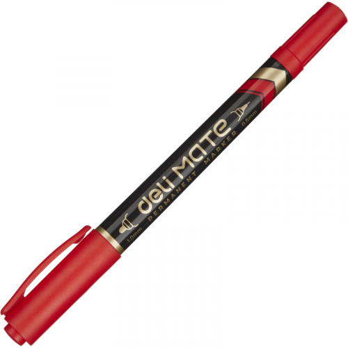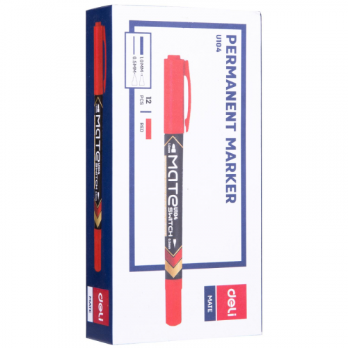 Маркер перманентный двухсторонний Deli Mate предназначен для письма на любой поверхности. Корпус маркера изготовлен из прочного пластика. Чернила устойчивы к климатическим изменениям (дождь, туман, солнце). Благодаря спиртовой основе чернила быстро сохнут и не смазываются. Двухсторонний наконечник позволяет варьировать толщину линии письма от 0.5 до 1 мм. Фетровый наконечник обеспечивает экономный расход чернил. Маркер не перезаправляется. Колпачок плотно закрывается, что предотвращает высыхание наконечника и чернил. Маркер абсолютно безопасен для здоровья и окружающей среды.Цвет чернил: красный.