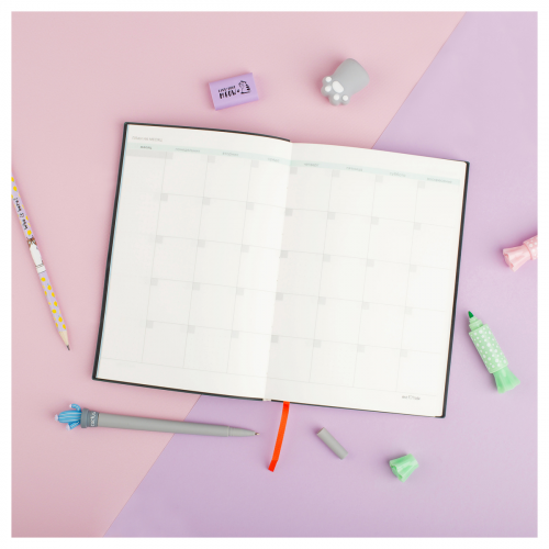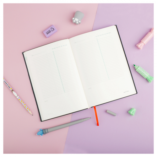 Недатированный ежедневник MESHU "Сat walk. Cattorini island" формата А5 — отличный помощник для тех, кто ценит своё время. Размер изделия — 143*210 мм. Внутренний блок состоит из 136 листов кремовой бумаги повышенной плотности 80 г/м². Ежедневник содержит справочные материалы. Обложка сделана из ультрамягкой экокожи. Дизайн подчёркивают резинка-фиксатор с аппликацией, закладка-ляссе и отделка — тиснение фольгой. Ежедневник подходит под персонализацию. Индивидуальная упаковка изделия гарантирует его сохранность. • Формат: А5; • Размер: 143*210 мм; • Количество листов: 136; • Материал обложки: экокожа; • Отделка обложки: тиснение фольгой.