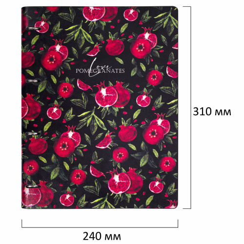 Тетрадь на кольцах БОЛЬШАЯ А4 (240х310 мм), 120 л., под кожу, BRAUBERG VISTA, "Гранаты", 404513